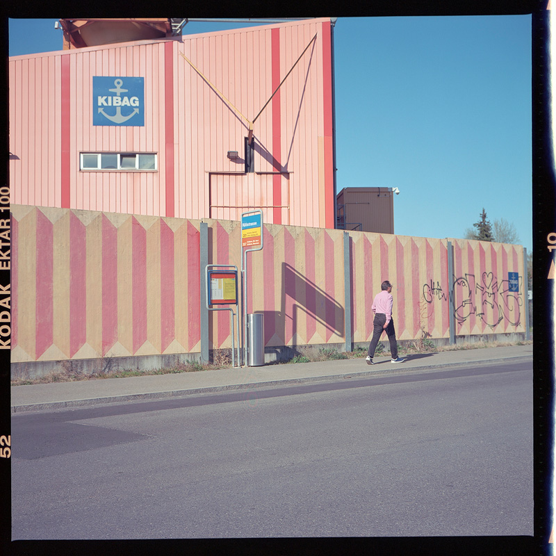 Bei der ersten Situation entscheide ich mich jeweils für einen passenden Film und hoffe, dass dieser auch für die nächsten Sujets passen wird. Blöd ist beispielsweise, wenn man einen Schwarzweissfilm eingelegt hat und dann steht da plötzlich dieses knallrote Auto einsam vor dieser riesigen knallroten fensterlosen Fassade. Hätte ich doch bloss einen Ektar 100 eingelegt!“