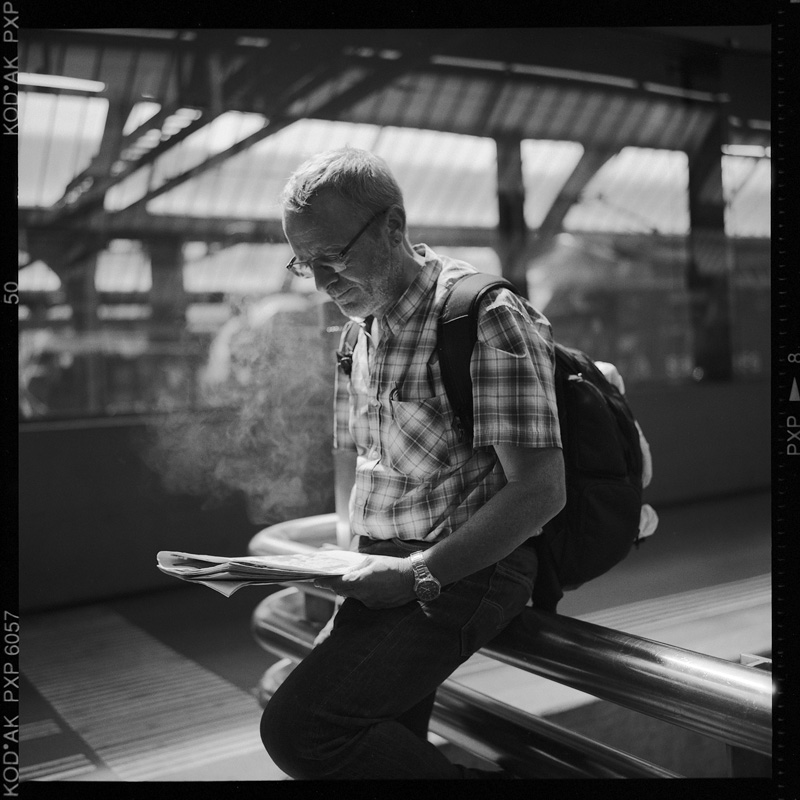 „Reiner Zufall. Im Frühling 2015 lief ich in Zürich am Foto Ganz vorbei, wo fünf Rolleiflex Kameras im Schaufenster ausgestellt waren. Ich fand sie als Objekte wunderschön. Eine davon – eine 3.5 F – hatte einen integrierten Belichtungsmesser und war nicht ganz günstig. Als ich zwei Wochen später wieder ins Schaufenster schaute, waren die anderen vier Rolleiflex bereits weg. Nur die 3.5 F war noch da. Also ging ich rein, liess sie mir erklären, legte einen Schwarzweissfilm ein und hopp de Bäse. Seither kamen weitere Kameras von 35 mm bis 8 × 10 inch und eine veritable Dunkelkammer hinzu. Es ist zu einem Obsessiönchen geworden.“